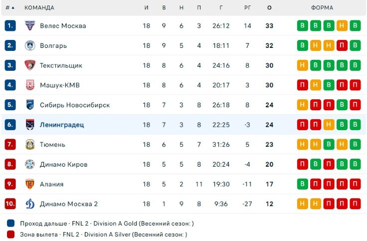 "Ленинградец", который возглавляет белорусский тренер Алесей Бага, в последних трёх матчах однажды сыграл вничью и потерпел два поражения. Команда набрала 24 очка и заняла в итоговой таблице шестое место, которое позволит ей весной будущего года продолжить борьбу за путёвку в Д2.