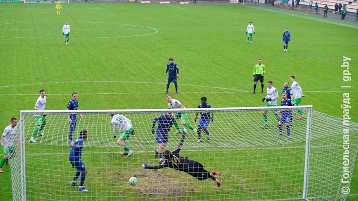В Гомеле матч начался на несколько минут раньше, и старт тоже проходил спокойно. Хозяева контролировали игру в статусе фаворита (ну, и еще команды, которая победила в своих пяти предыдущих домашних встречах). А открыли счет "рыси" после углового — защита "Сморгони" на высоте не смогла совладать с Лаптевым.